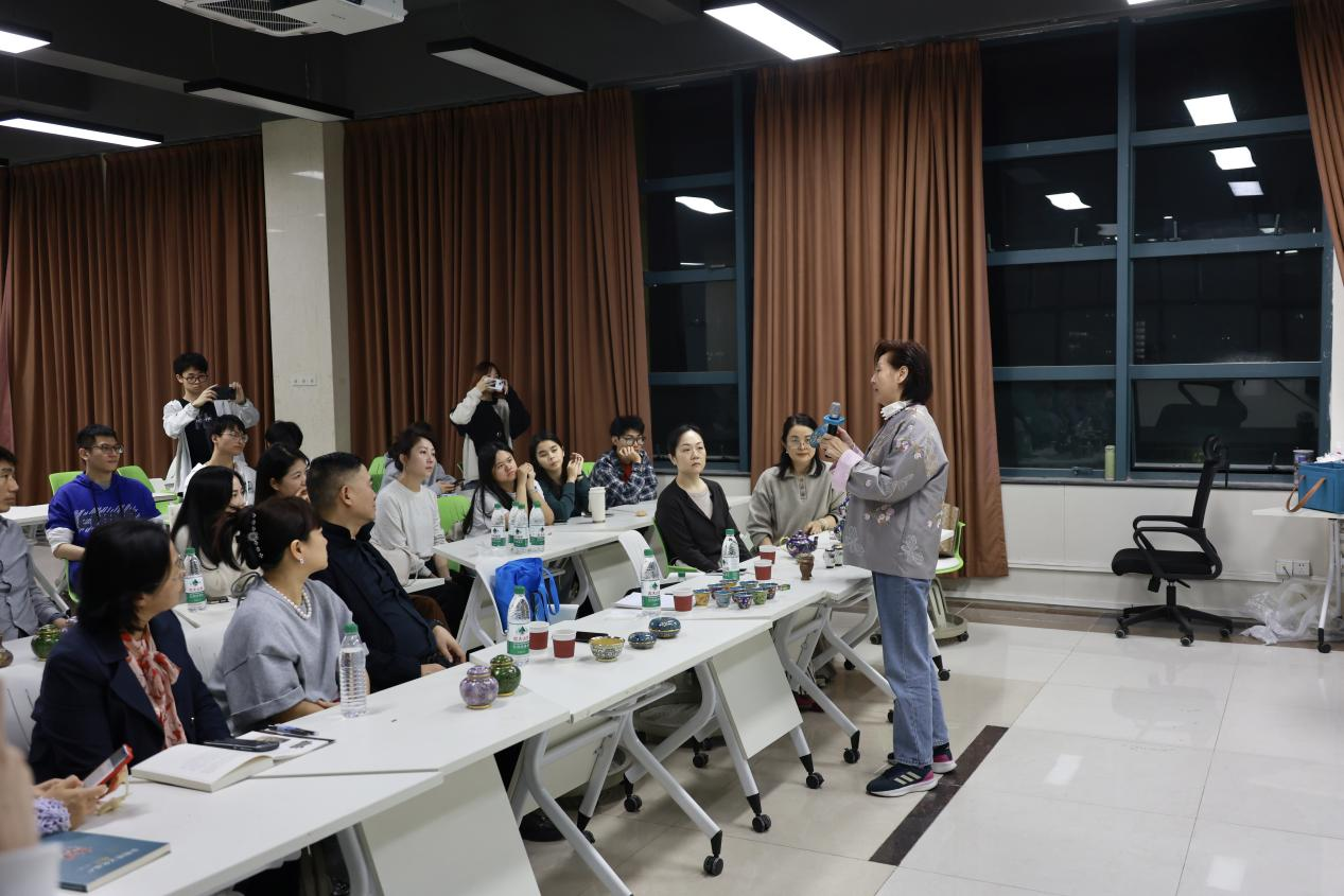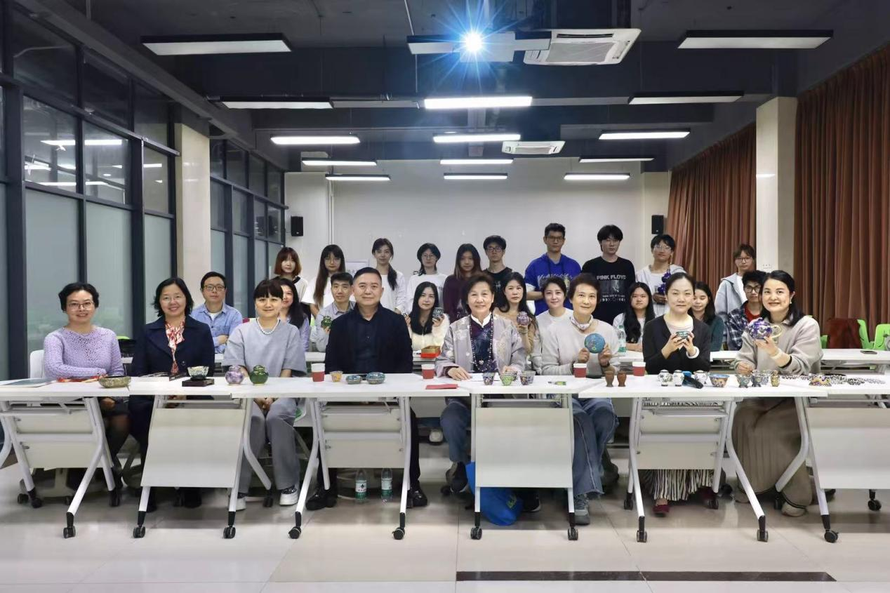 2025年11月24日晚19:00-20:30,我校“景泰蓝:千年工艺的匠心与实践”主题学术沙龙在北苑食堂融创空间成功举办。活动与澳门传统文化艺术交流学会会长黄敏意联合策划,由广东金融学院“艺术乡见”广宁工作室主持人、心理与创业教育学院副院长梁冰主持,特邀澳门“景泰蓝”非遗传承人胡淑兰担任主讲嘉宾,九彩舸艺术/文旅创始人范国强、广州美术学院成教院常能、广州画院曾祥梅、广东食品药品职业学院陈菡等业界专家及学院美育中心教师代表莅临指导。全校各院系师生代表及非物质文化遗产数智化保护与传承微专业的师生团队齐聚现场,通过专家解析与亲手实践沉浸式感受传统工艺魅力,推动非遗进校园落地生根,为响应双百行动艺术赋能乡镇“艺术乡见”工作室进一步培养非遗推广优秀后备人才敦实基础。